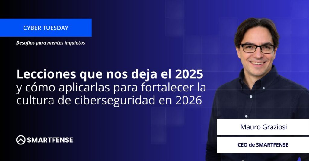 En este Cyber Tuesday, Mauro Graziosi (CEO de SMARTFENSE) repasa los aprendizajes clave del año y los convierte en acciones prácticas para fortalecer la cultura de ciberseguridad en 2026.